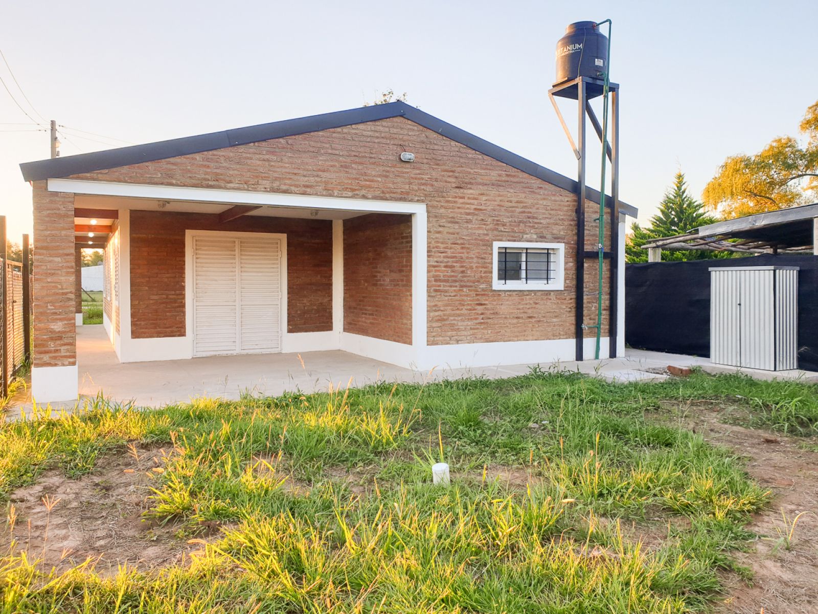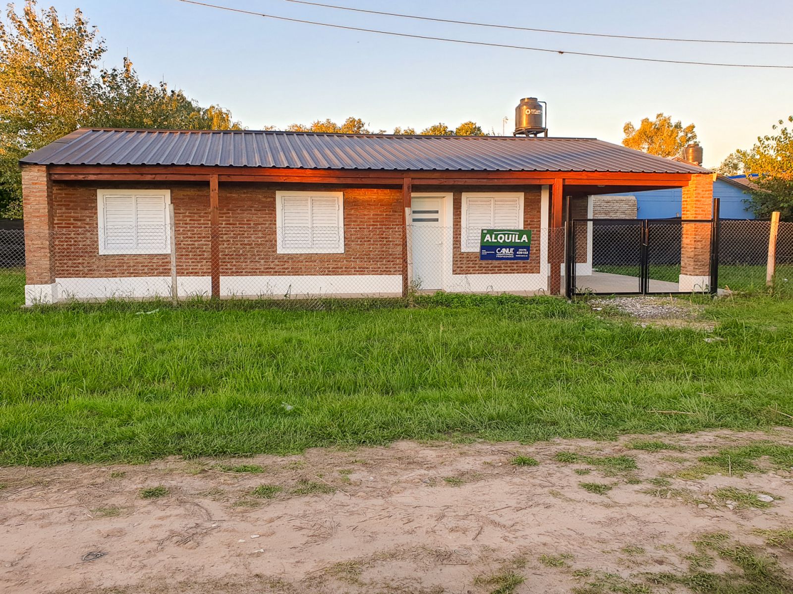Casa de tres dormitorios, con cocina comedor amplia, baño, galería cubierta, y patio.
